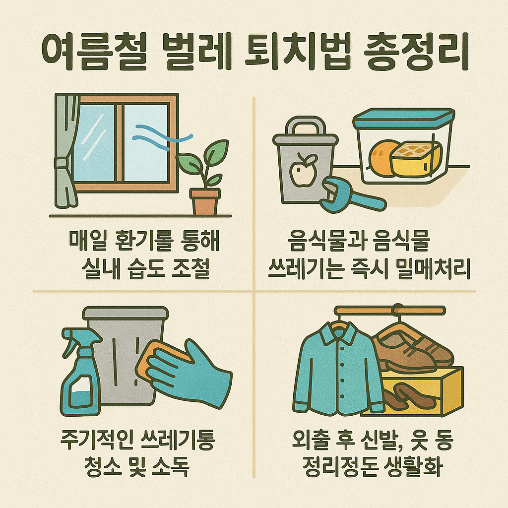 벌레는 환경이 제공되지 않으면 자연히 멀어집니다. 아래의 생활 습관을 함께 실천해보세요.